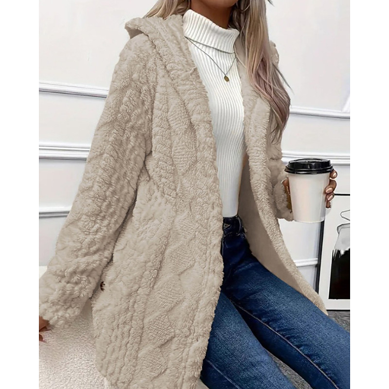 Women's Teddy Coat Hoodie Jacket Warm Comfortable Buttons Casual Plain Vacation Going out Weekend Regular Hoodie Regular Fit Long Sleeve Outerwear Black White Apricot Fall Winter