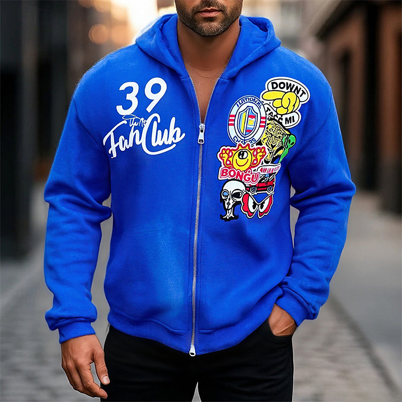 Men's Graphic Hoodie Fashion Daily Casual Long Sleeve Hooded Outdoor Vacation Streetwear Festival Blue Purple Green Zip Up Pocket Printing Spring Fall Designer S M L XL 2XL