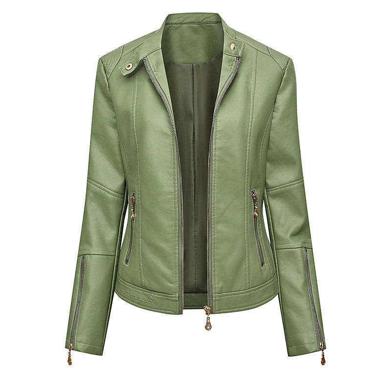 Women's Faux Leather Jacket Comfortable Zipper Pocket Fashion Plain Outdoor Vacation Going out Weekend Regular Collarless Regular Fit Long Sleeve Outerwear Black Red Green Spring Fall