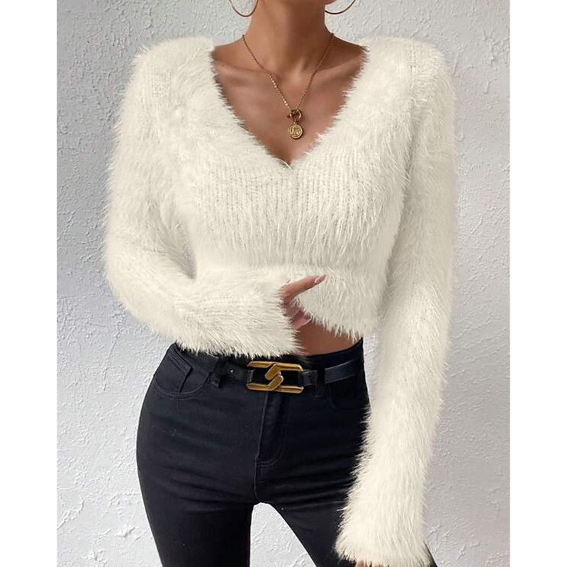 Women's Sweater Pullover Fashion Casual Solid Color Ribbed V Neck Knitted Long Sleeve Regular Tops Knit Outdoor Daily Weekend Black White Fall Winter