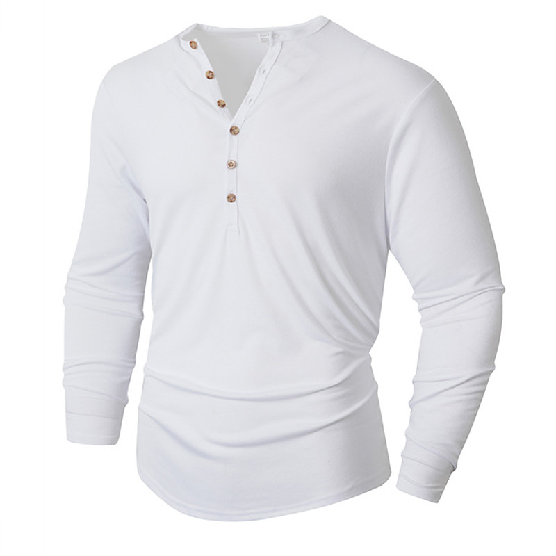 Men's T Shirt Henley Shirt Tee Tee Top Long Sleeve Henley Spring Fall Plain Fashion Designer Basic Buttons Vacation Street Going out Black White Navy Blue Top Tee for Men