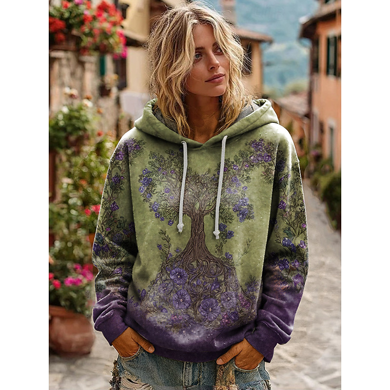 Women's 3D Print Vintage Boho Hoodie Patchwork Hoodie Sweatshirt Floral Pullover Sweatshirt Elegant Warm Vintage Long Sleeve Hooded Street Dailywear Casual Patchwork Print Yellow Spring Fall Winter