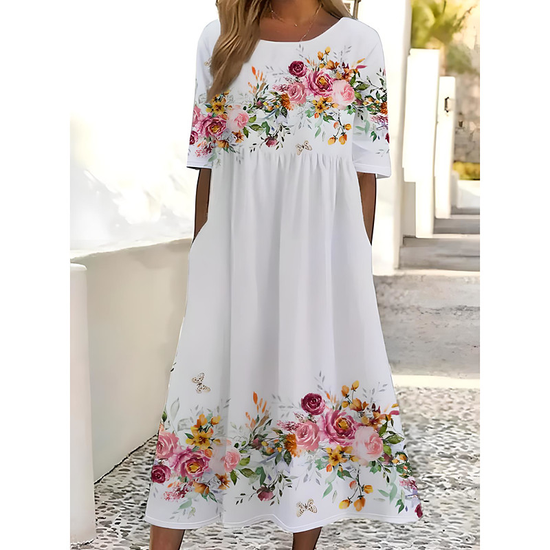 Women's Midi Dress Sundress Summer Dress Slip Dress Vacation Casual Beach Birthday Daily Holiday Loose Fit Floral Graphic Short Sleeve Crew Neck White Summer
