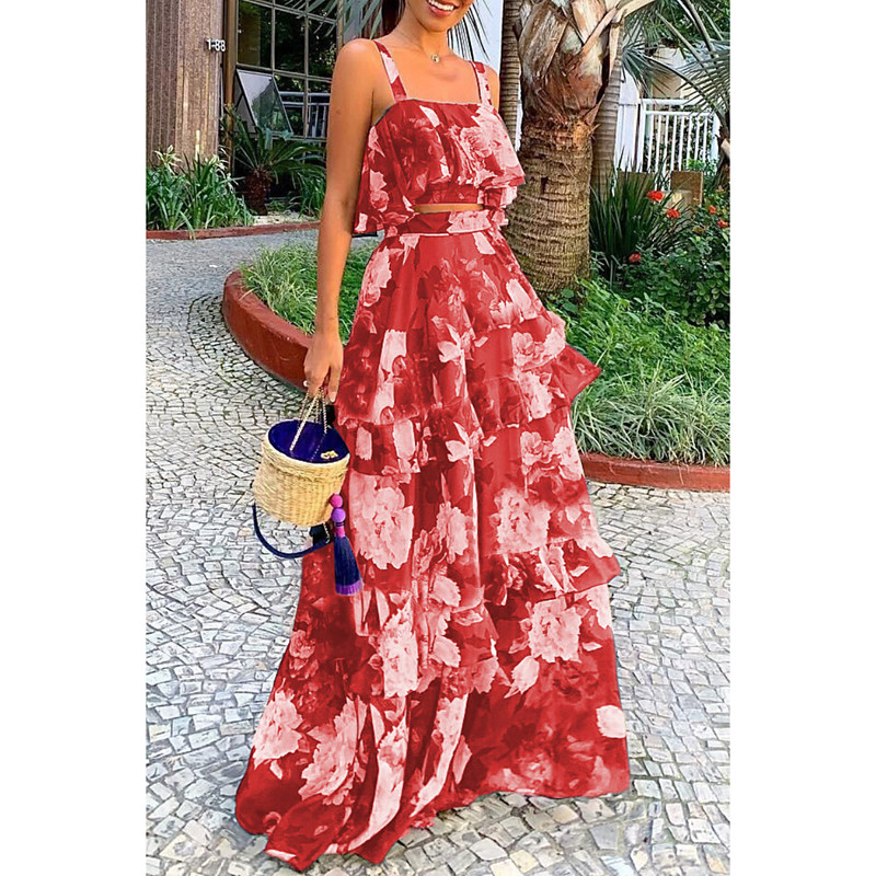 Women's Long Dress Maxi Dress Two Piece Dress Peplum Dresses Fashion Holiday Tea Party Going out Regular Fit Flower Sleeveless Spaghetti Strap Red Navy Blue Green Summer