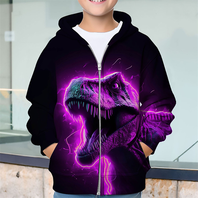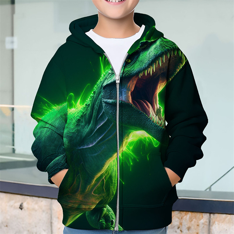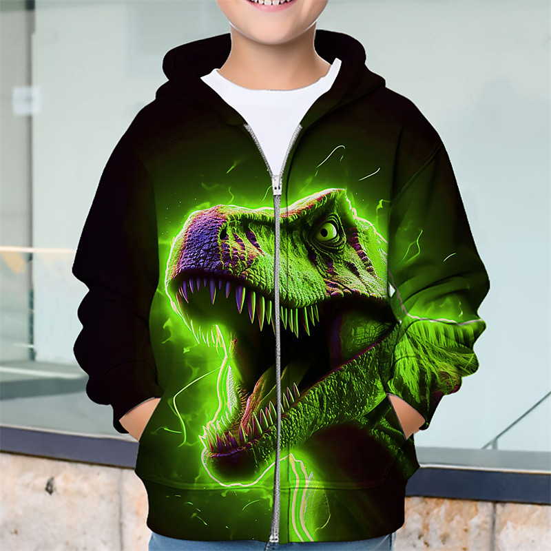 Boys 3D Dinosaur Hoodie Coat Outerwear Long Sleeve Spring Fall Adorable Sport Kids 4-12 Years Zip Street Daily Regular Fit