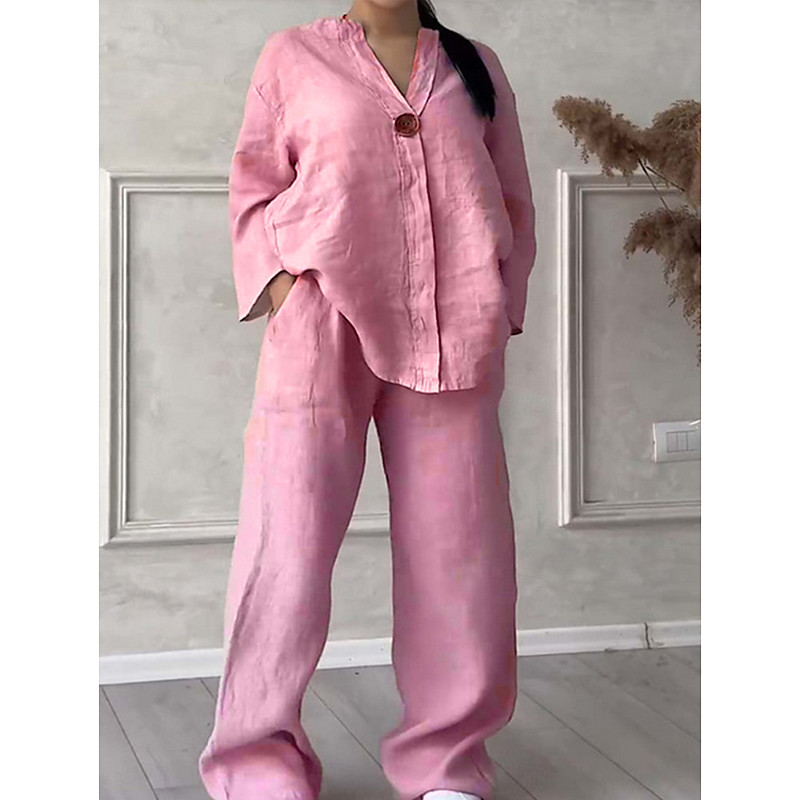 Women's 2 Pieces Set Elegant Fashion Streetwear Shirt Blouse Short Sleeve Shirt Collar Solid Color Outdoor Work Casual White Pink Army Green Summer Regular Fit