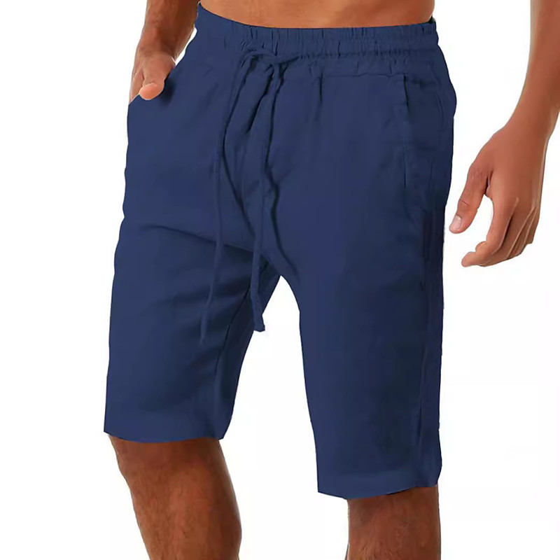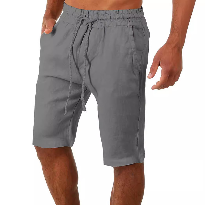 Men's Shorts Linen Shorts Summer Shorts Beach Shorts Drawstring Elastic Waist Plain Comfort Breathable Knee Length Outdoor Daily Beach Fashion Classic Style Black White