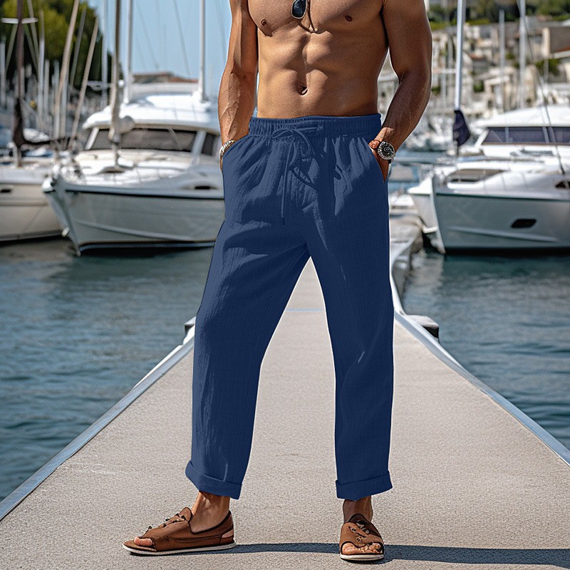 Men's Linen Pants Trousers Summer Pants Beach Pants Drawstring Elastic Waist Straight Leg Plain Comfort Breathable Full Length Casual Daily Holiday Vacation Fashion Black White