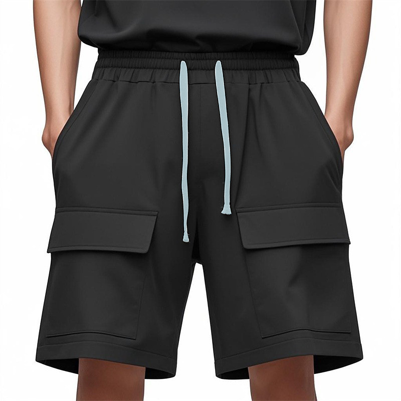 Men's Cargo Shorts Summer Shorts Bermuda shorts Casual Shorts Drawstring Multi Pocket Straight Leg Plain Breathable Moisture Wicking Knee Length Outdoor Casual Running Fashion Streetwear Black White