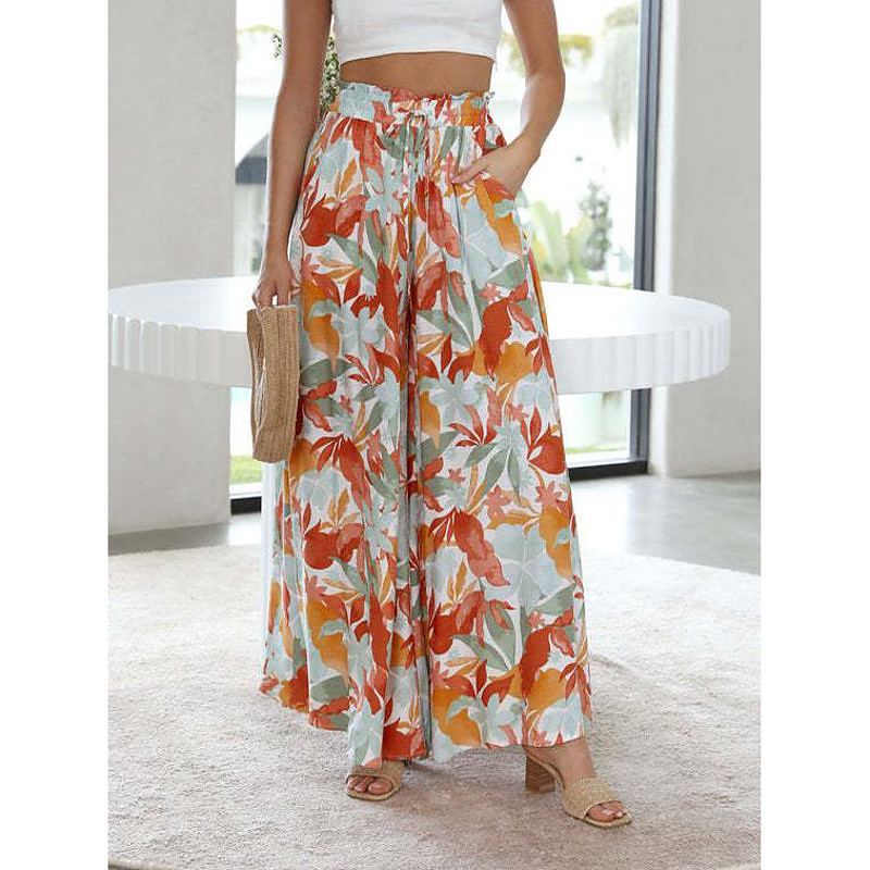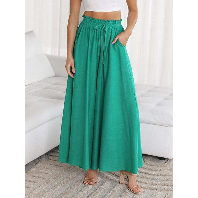 Women's Wide Leg Cotton Linen Pants Pants Trousers Fashion Full Length Shamrock Drawstring Side Pockets Wide Leg Breathability Comfortable Inelastic Casual Daily Light Yellow Orange red Forest Green