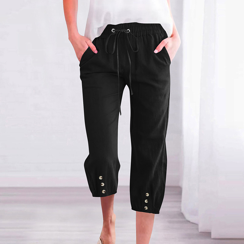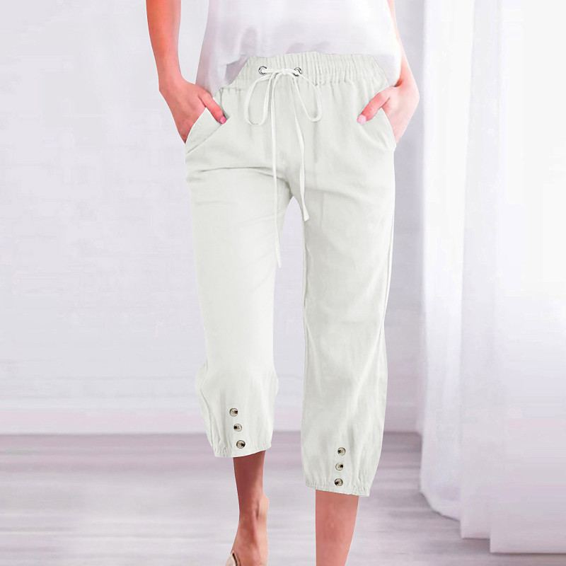 Women's Capri Pants Cotton Linen Pants Slacks Streetwear Casual Calf-Length High Waist Natural Plain Pocket Elastic Drawstring Design Breathability Soft Comfortable Micro-elastic Vacation Street