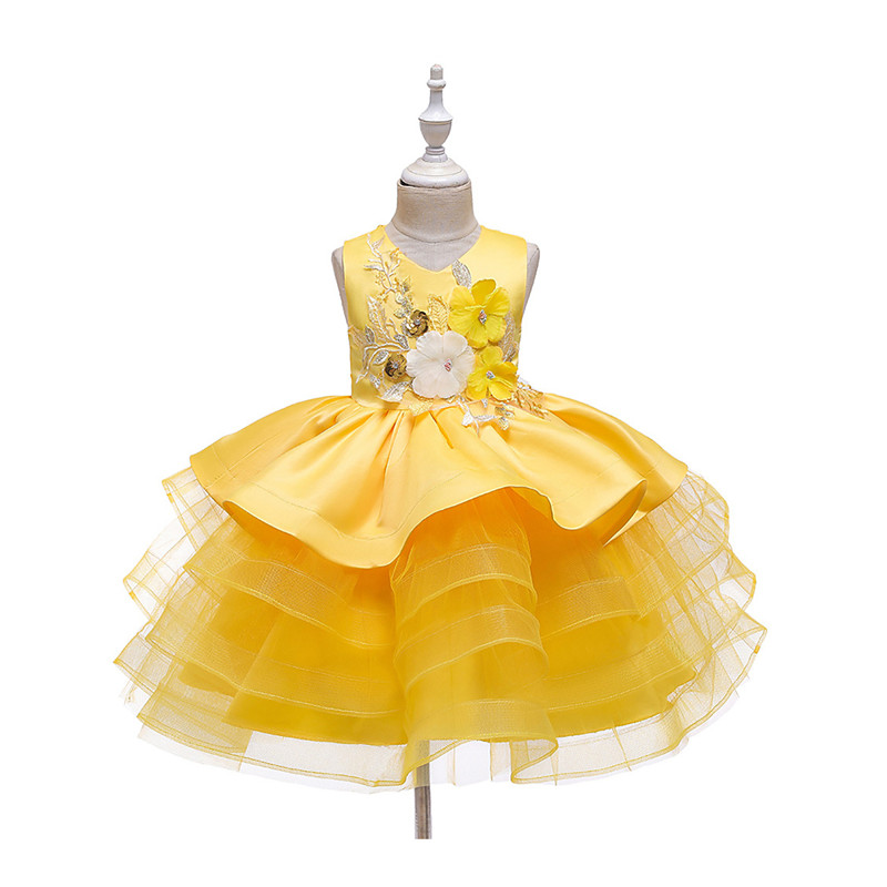 Kids Girls' Party Dress Flower Sleeveless Performance Birthday Mesh Beautiful Sweet Polyester Knee-length Party Dress Swing Dress A Line Dress Summer 4 years Yellow Pink Blue