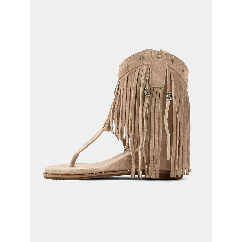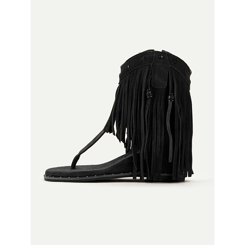 Women's Boho - Style Brown Fringe Ankle Sandals – Trendy and Flowy Footwear for Music Festivals, Beach Walks and Casual Outdoor Gatherings