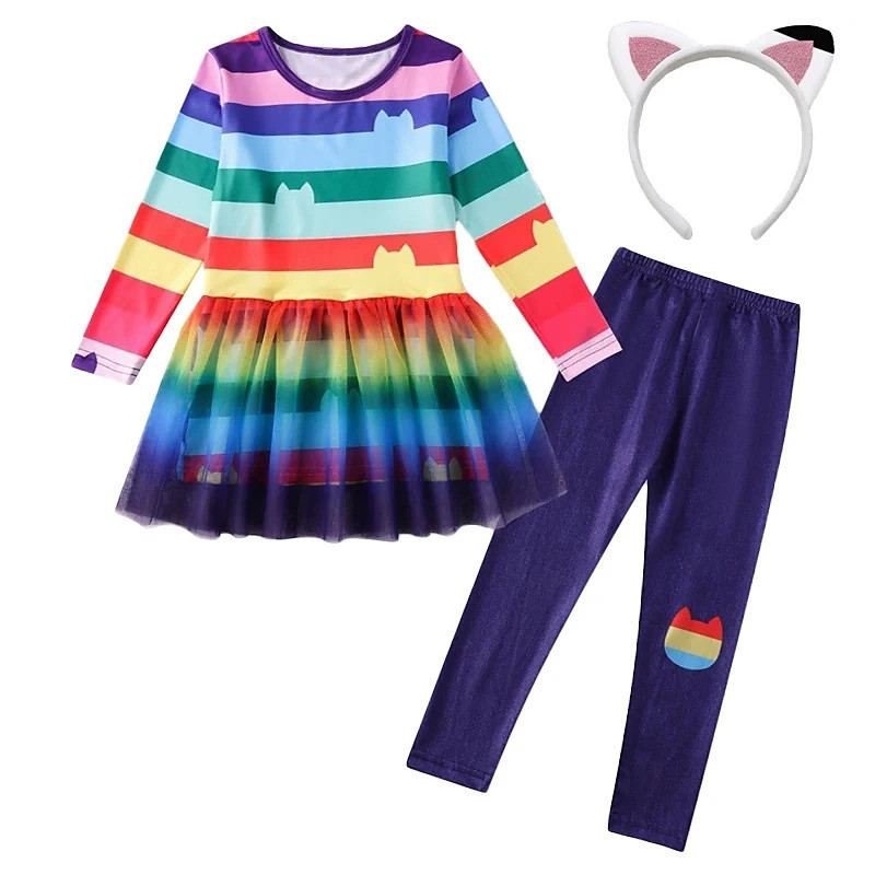 3 Pieces Kids Girls' Stripe Pants Suit Set Long Sleeve Fashion Outdoor 4 years Summer Rainbow Set Rainbow SetHairband Black White SetHairband