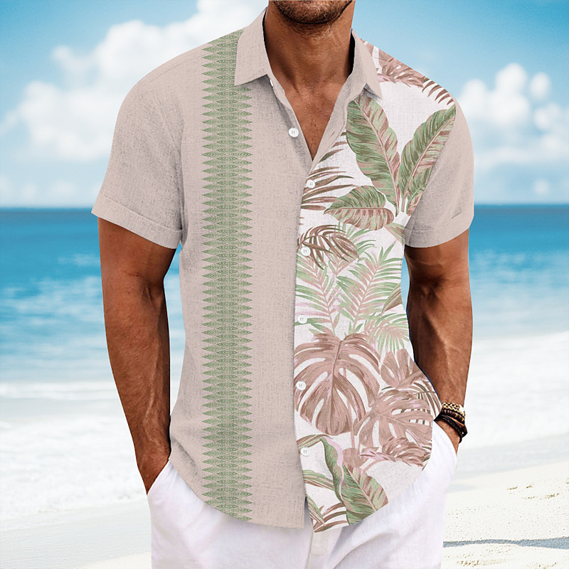 Men's Geometric Palm Leaf Tropical Plants Shirt Guayabera Shirt Button Up Shirt Short Sleeve Fashion Casual Vacation Dailywear Beach Wear Summer Spring Turndown Collared Shirts Light Pink Blue Green