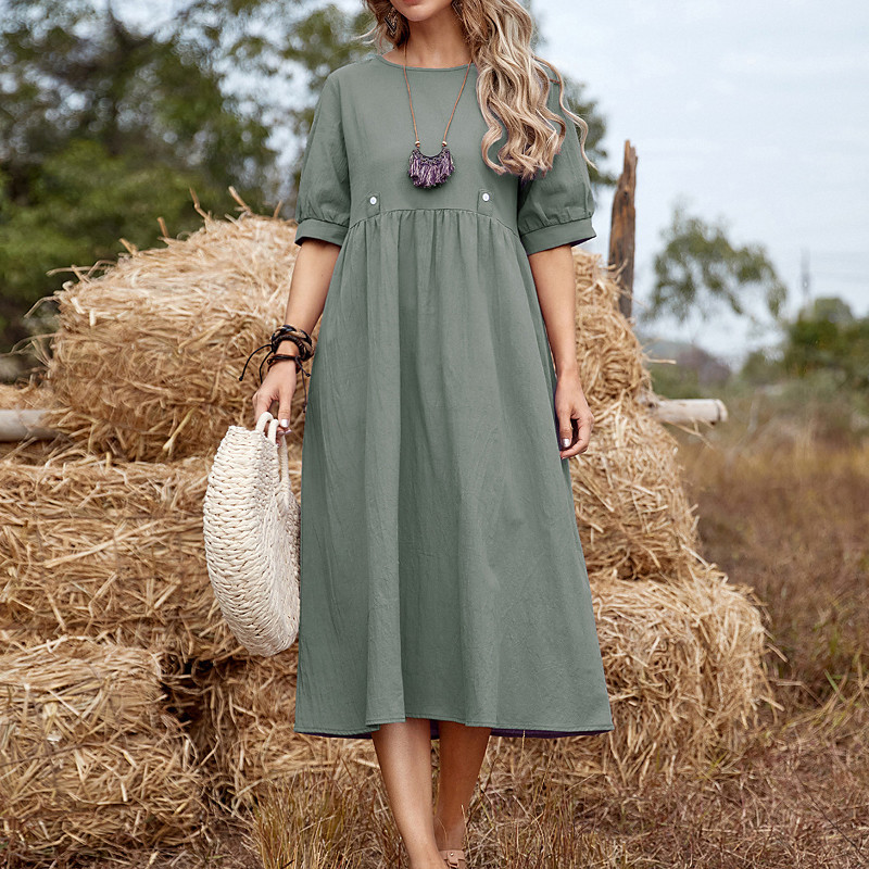 Women's Midi Dress Linen-Inspired Dresses Casual Dress Cotton Linen Dress Fashion Basic Outdoor Daily Holiday Regular Fit Plain Short Sleeve Crew Neck Light Green Army Green Purple Summer