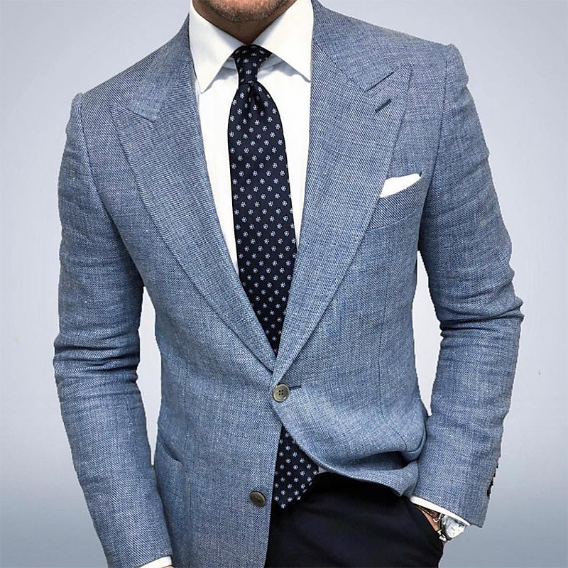 Men's Graduation Blazer Business Cocktail Party Wedding Party Fashion Casual Spring Fall Polyester Plain Buttons Casual / Daily Single Breasted Blazer Dark Gray Blue Gray