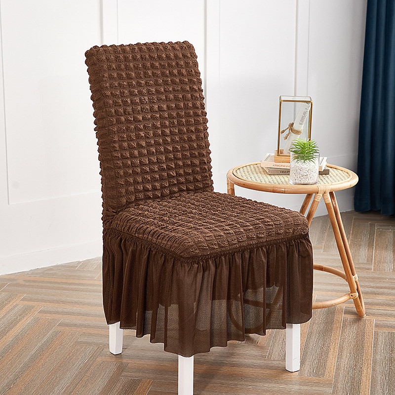 Dining Chair Covers, Stretch Chair Cover Removable Washable Chair Slipcover Dining Room Solid Color Little Plaid with Skirt Banquet Chair Covers Polyester