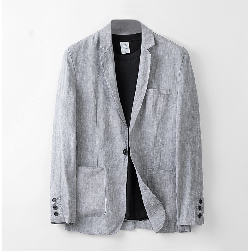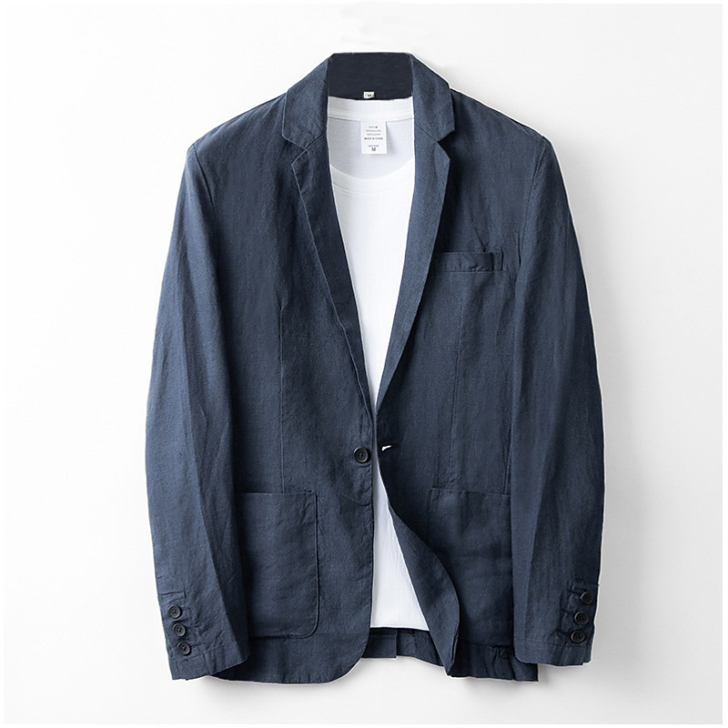 Men's Linen Blazer Suits Wedding Anniversary Vacation Elegant Neutral Spring Fall Cotton Linen Solid Color Buttons Comfy Single Breasted One-button Blazer White Navy Blue Beige Gray