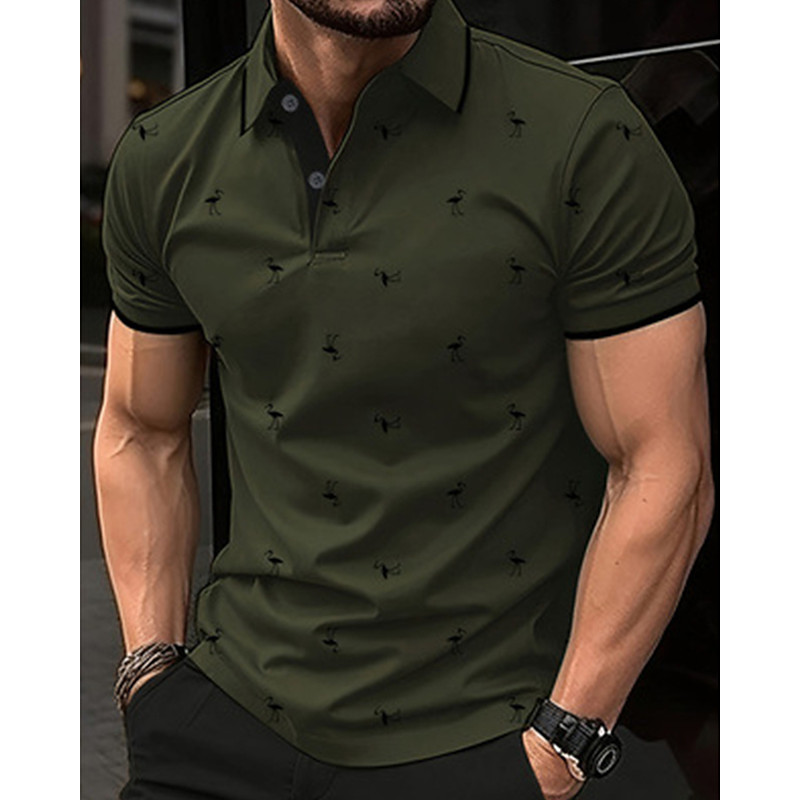 Men's Golf Shirt Golf Polos Shirts Work Casual Lapel Short Sleeve Basic Modern Flamingo Buttons Summer Spring Regular Fit Lake blue Wine Dark Red Pink Dark Pink Blue Golf Shirt