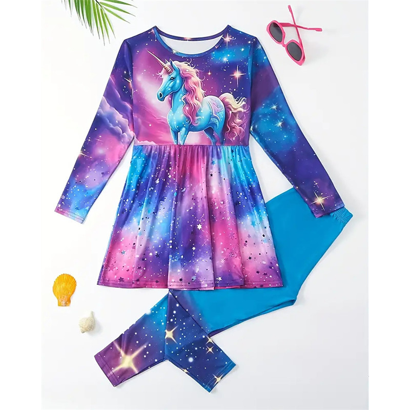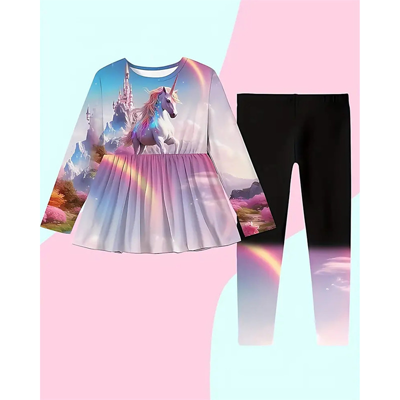 Girls' 3D Unicorn Set T-shirt Legging Long Sleeve Summer Spring Fashion Daily Basic Kids 4-12 Years Crew Neck Outdoor Vacation Tailored Fit