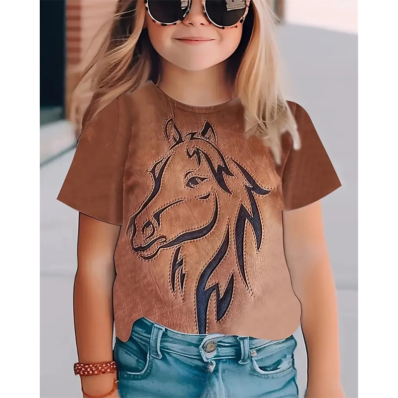 Girls' 3D Horse T shirt Tee Short Sleeve Summer Spring Fashion Basic Kids 4-12 Years Crew Neck Outdoor Casual Daily Regular Fit