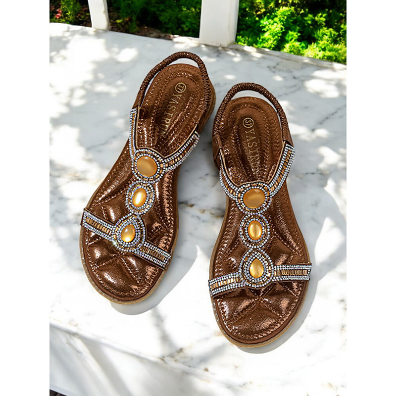 Elegant Black T-Strap Sandals for Women – Rhinestone Embellished Summer Sandals, Perfect for Beachwear, Casual Outings and Evening Events