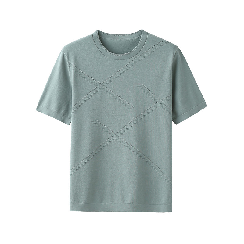 Men's Silk Linen Cotton T Shirt Line Texture Crew Neck School Short Sleeve Crewneck Clothing Apparel Knitwear Vacation Vintage Neutral