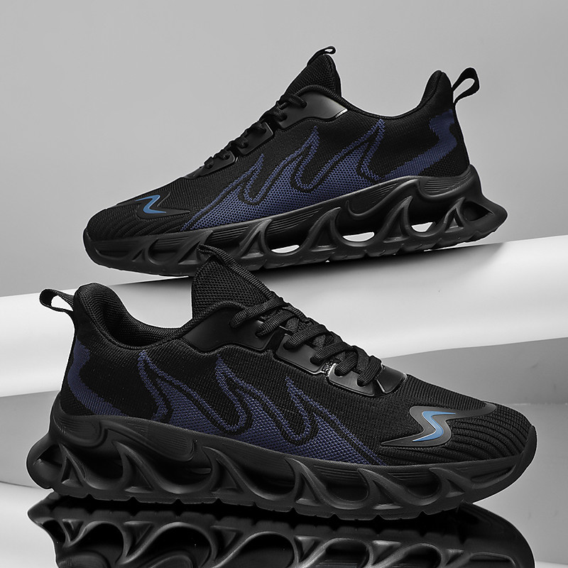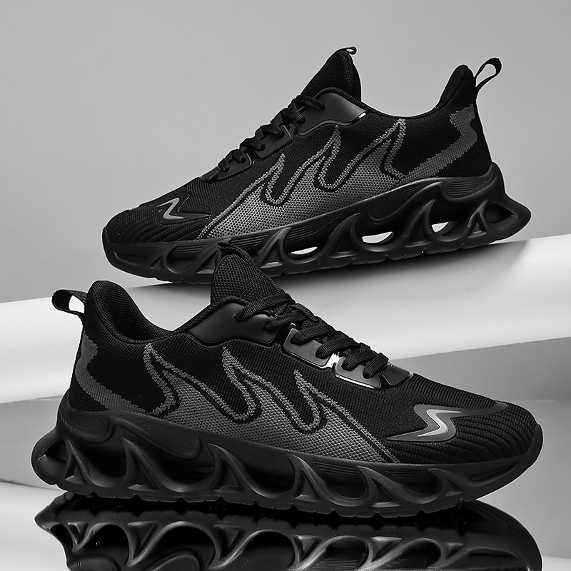 Men's Sporty Sneakers, Bold Flame Design in Black and Red, Athletic Shoes for Running and Gym
