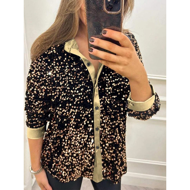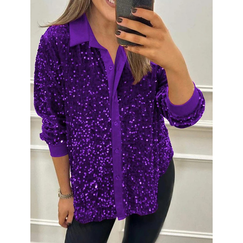 Women's Shirt Blouse Plain Stylish Modern Long Sleeve Shirt Collar Regular Tops Daily Sequins Buttons Pocket Black Yellow Red Blue Purple Summer