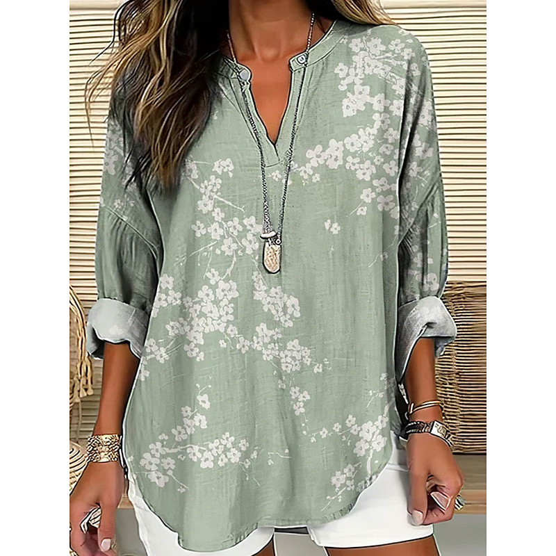 Women's Blouse Tunic V Neck Long Sleeve Boho Casual Tops Floral Graphic Vintage Tropical Regular Tops Daily Wear Print Pink Navy Blue Blue Green Khaki
