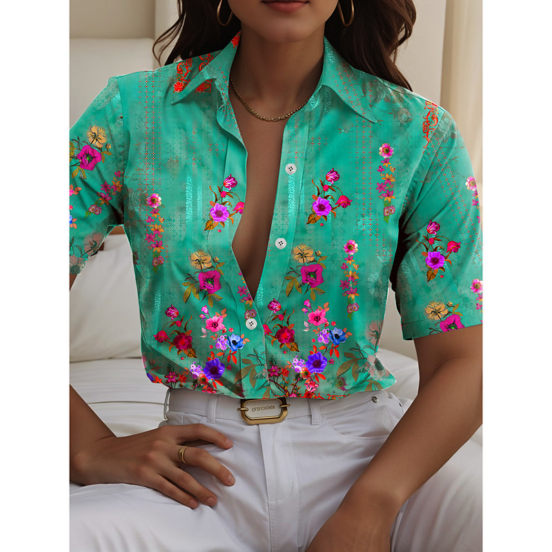 Women's Shirt Long Sleeve Button Down Blouse Floral Graphic Daily Stylish Short Sleeve Shirt Collar Regular Tops Daily Blue Orange Green Rose Pink Summer Spring