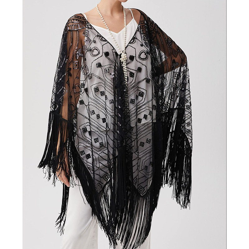 Retro Vintage Roaring 20s 1920s Scarf Wrap Shawls The Great Gatsby Flapper Girl Sequins Tassel Fringe Fancy Dress Women's Carnival Wedding Evening Party Masquerade Adults' Shawl