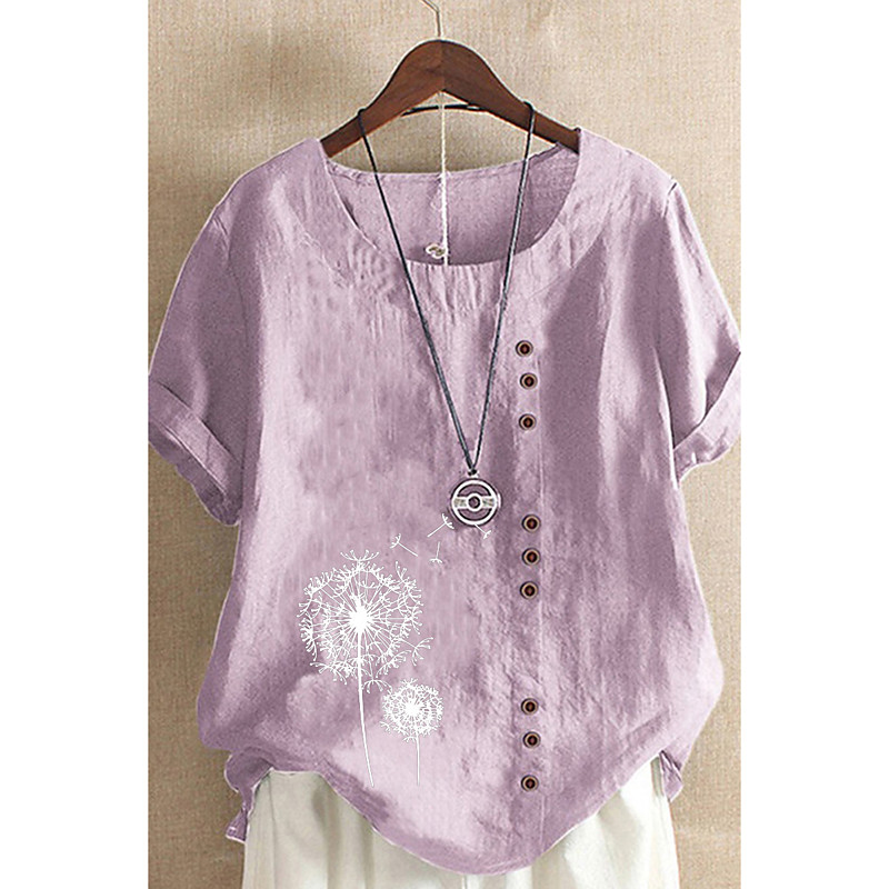 Women's T Shirt Cotton Shirt Cotton Linen Shirts Floral Fashion Casual Short Sleeve Crew Neck Regular Tops Daily Going out Weekend Print Yellow Light Green Pink Army Green Navy Blue Summer
