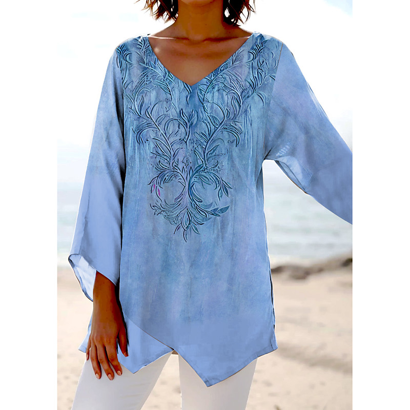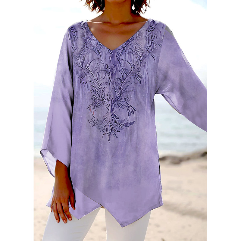 Women's Blouse Long Sleeve Asymmetrical Hem Floral Graphic Stylish Ethnic Beach Short Sleeve V Neck Regular Tops Daily Holiday Print Pink Blue Purple Green Summer Spring