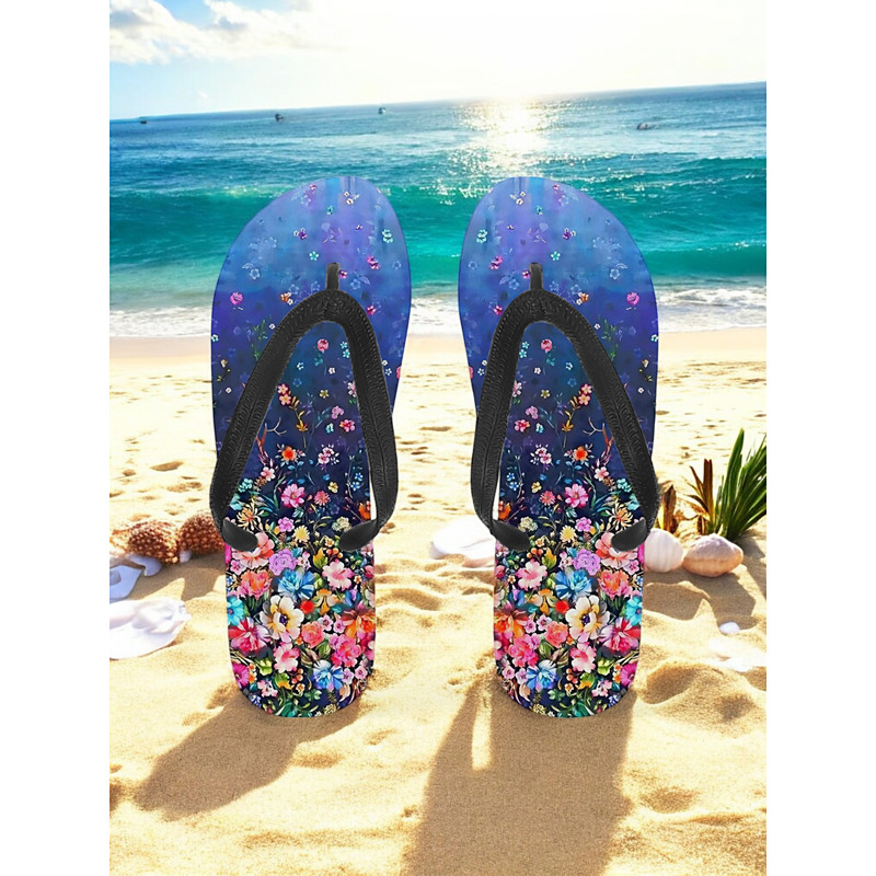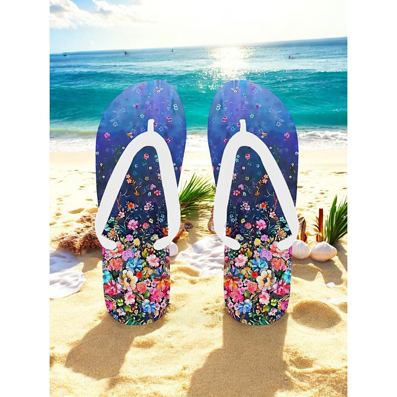 Women's Colorful Floral Flip-Flops - Vibrant Bohemian Beach Sandals for Summer Pool Resort Wear