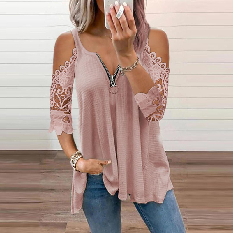 Women's Blouse Plain Modern Casual 3/4 Length Sleeve V Neck Regular Tops Daily Going out Zipper Cut Out Black White Pink Blue Gray Summer