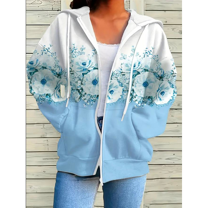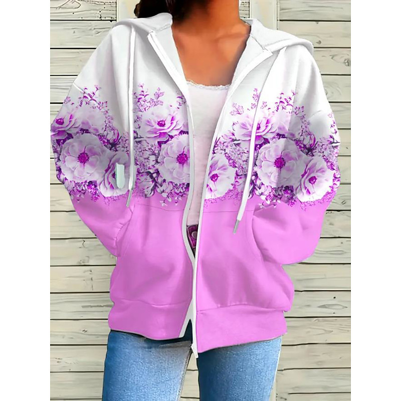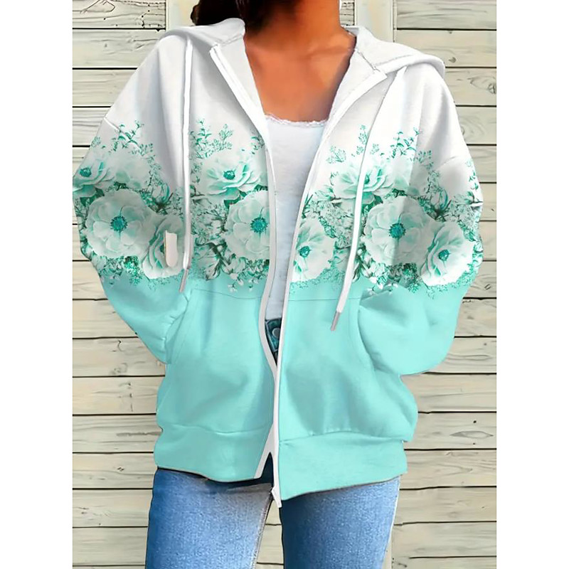 Women's Hooded Sweatshirt Jacket Long Sleeve Zip Up Hoodie With Pocket Lightweight Casual Micro-elastic Oversized Floral Active Vintage Sports Drawstring Front Pocket Pink Blue Fuchsia Green Fall
