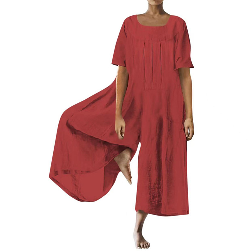Women's Normal Jumpsuit Streetwear Solid Color Short Sleeve Square Neck Street Going out Regular Fit Yellow Wine Army Green Summer