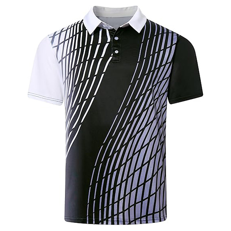 Men's Geometic Line Polo Short Sleeve Polo Shirts Collared Shirts Business Casual School Outdoor Sports Daily Wear Buttons 3D Print Summer Spring Fall Black