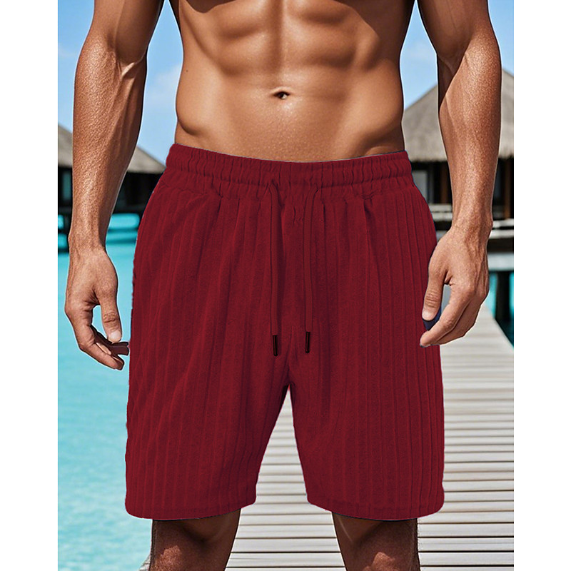 Men's Summer Shorts Beach Shorts Pocket Drawstring Elastic Waist Plain Comfort Breathable Short Vacation Holiday Beach Hawaiian Boho Black Wine