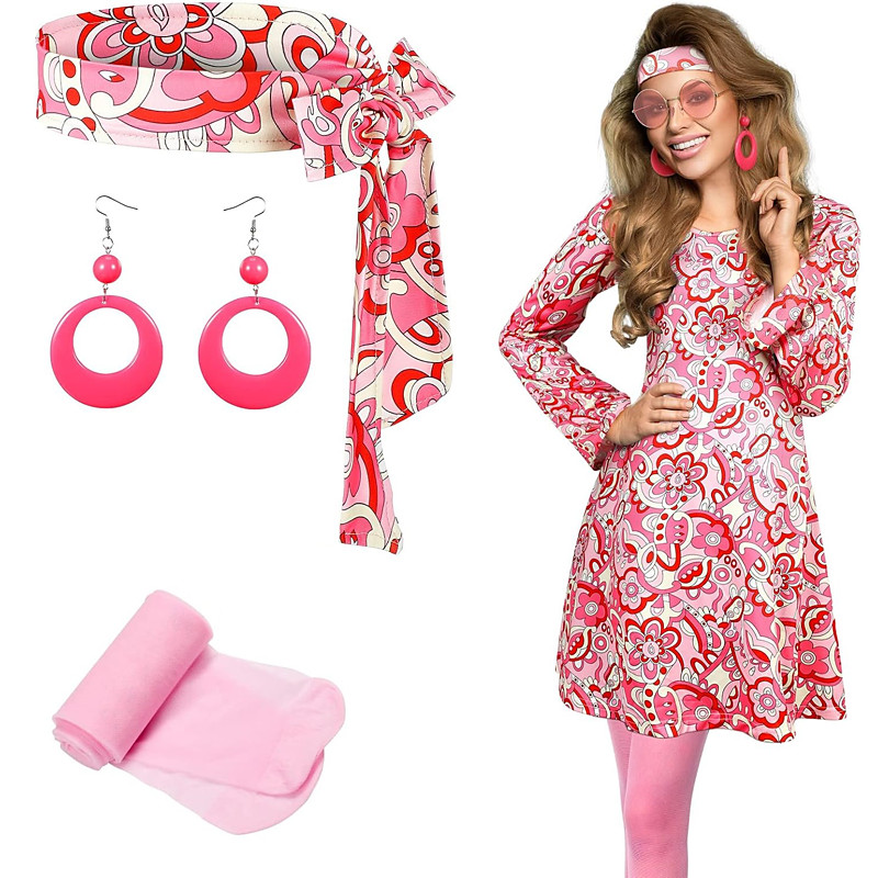 4 Pcs 70s 80s Hippie Costumes Accessories for Women 70's Disco Outfit for Halloween Party Cosplay