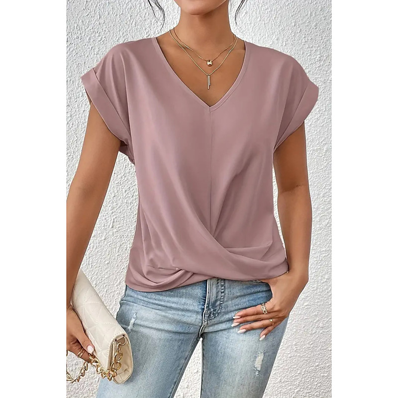 Women's Blouse Plain Modern Casual Short Sleeve V Neck Regular Tops Daily Going out Ruched Blush Pink Black White Wine Summer