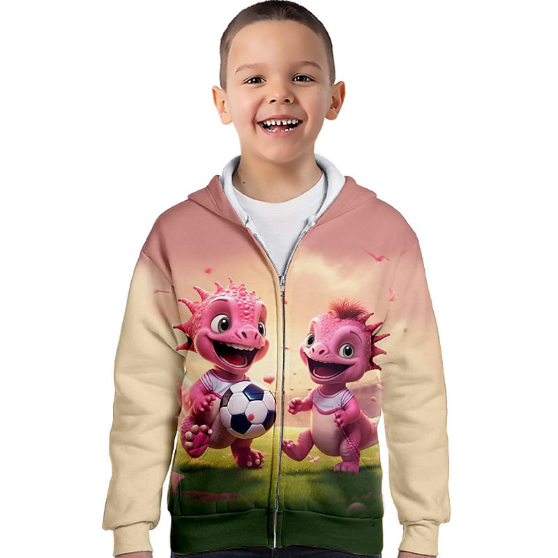 Boys 3D Cartoon Dinosaur Football Hoodie Coat Outerwear Long Sleeve Fall Winter Active Streetwear Cool Polyester Kids 3-12 Years Zip Street Daily Regular Fit
