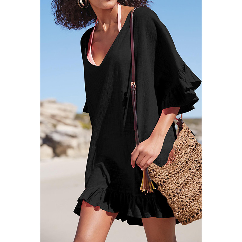 Women's Swimwear Cover Up Swimsuit Ruffle Summer Plain V Wire Short Sleeves Bathing Suits