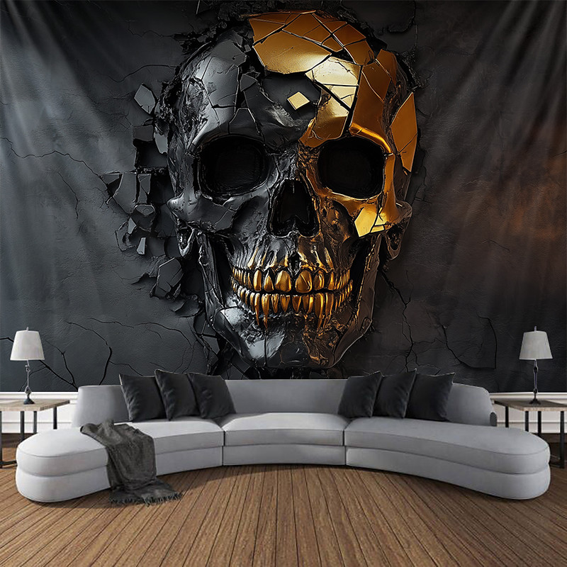 Halloween Trippy Skulls Hanging Tapestry Wall Art Large Tapestry Mural Decor Photograph Backdrop Blanket Curtain Home Bedroom Living Room Decoration