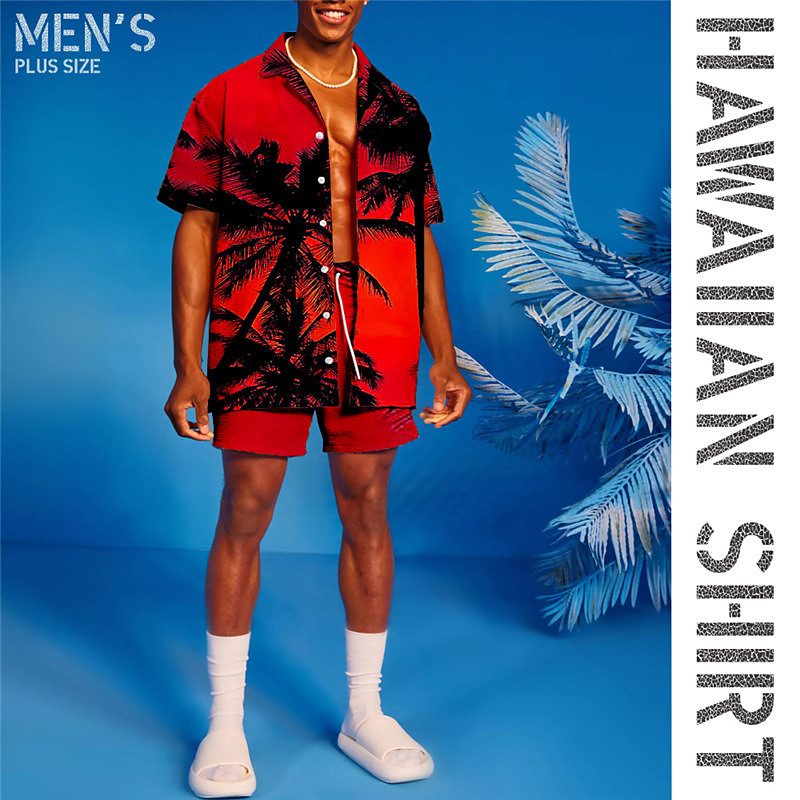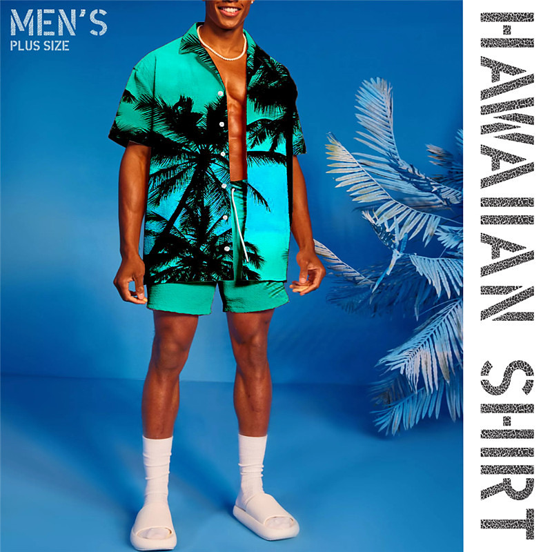 Men's Coconut Tree Graphic Prints Shirts Sets Shirt Set Summer Hawaiian Shirt Short Sleeves Turndown Tropical Hawaiian Casual Vacation Sports Outdoor Street Buttons Elastic Waist Print Spring