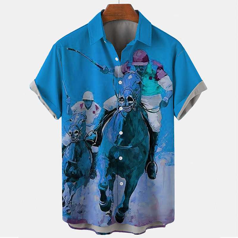 Kentucky Derby Men's Horse Racing Shirt Button Up Shirt Short Sleeve Vintage Retro Holiday Festival Summer Spring Turndown 3D Print Funny Kentucky Derby Shirts Blue Orange