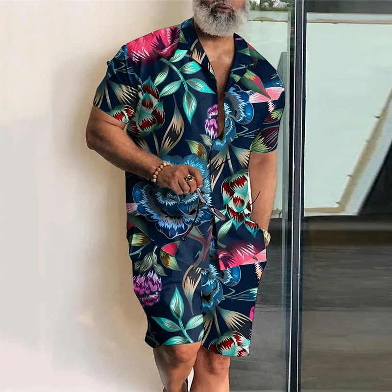 Men's Floral Graphic Prints Leaves Shirts Sets Shirt Shirt Set Summer Hawaiian Shirt Short Sleeves Cuban Collar Fashion Streetwear Designer Outdoor Street Casual Print Summer Spring Blue