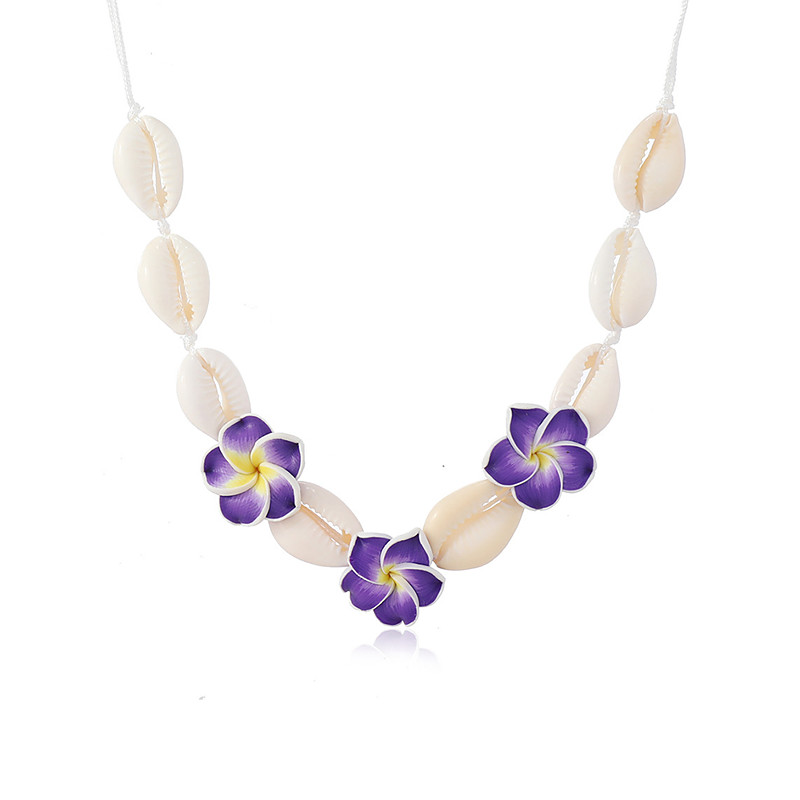 Handmade Cowrie Shell Necklace with Plumeria Flowers – Boho Hawaiian Beach Jewelry for Women, Adjustable Summer Surfer Choker, Tropical Vacation Festival Accessory